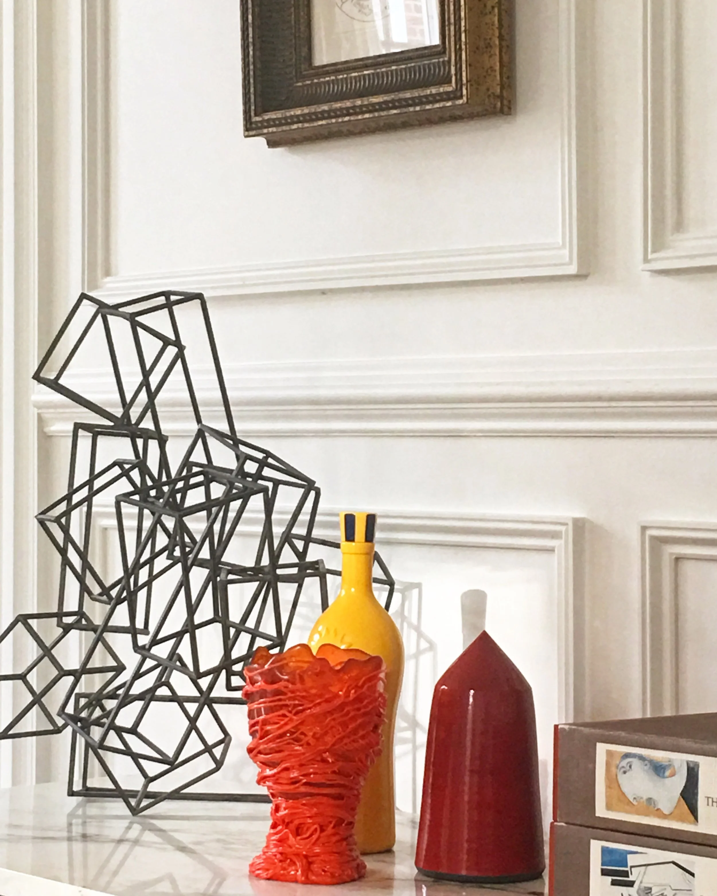 Some old and some new with a George's Braque sneaking in a little into the photo but, altogether a favorite sculptural corner! #vignette @rajirmdesign #rajirmdesign #myphoto #rajishome #georgesbraque #JamesSalaiz #gaetanopesce